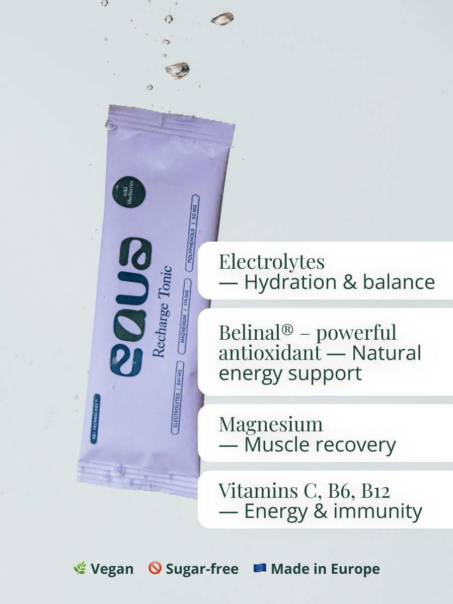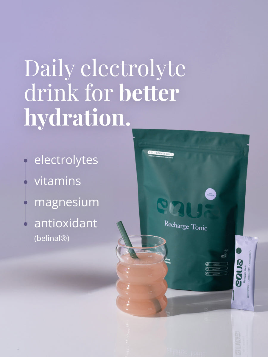 You’ll notice deeper, longer-lasting hydration as Recharge tonic replenishes key electrolytes like magnesium, potassium, and sodium, helping your body absorb water faster and stay balanced throughout the day.