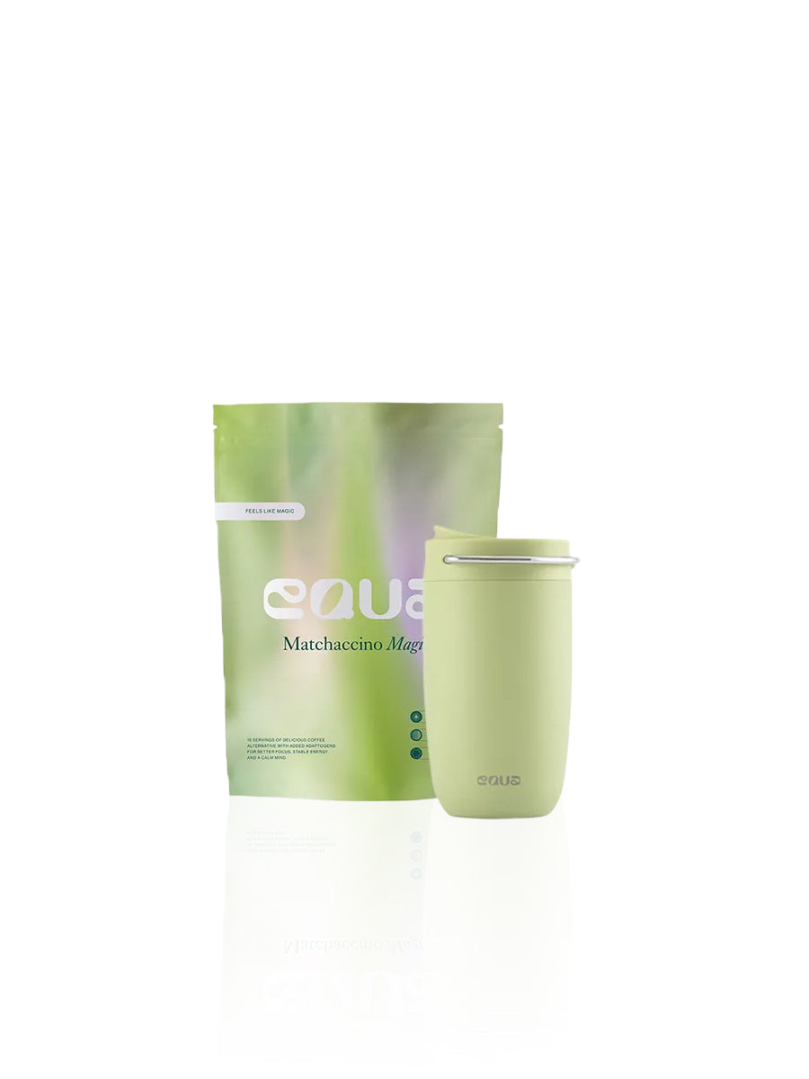 Matcha with naturally occurring L-Theanine supports calm focus, boosted by two adaptogens known for their long term stress-reducing properties. Enjoy it in the morning or wherever your day takes you, instead of reaching for another coffee. Kept warm in a stainless-steel, thermo-insulated Matcha Cup designed for everyday use, keeping your drink warm.
