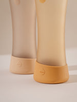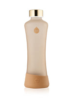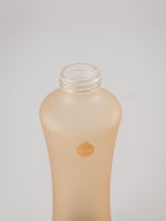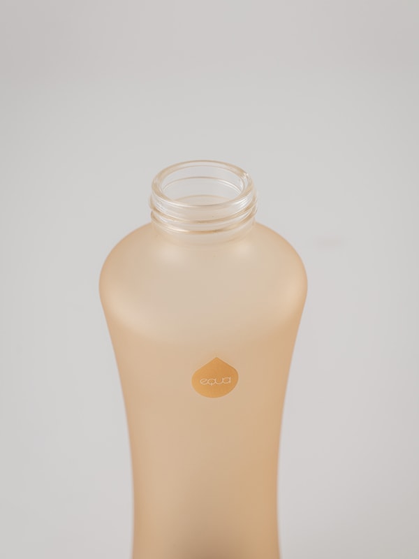 Mit ihrer geschwungenen Silhouette, der weichen, matten Oberfläche und den goldenen Details liegt die Glasflasche perfekt in der Hand. Nackte Silikondetails unterstreichen die Funktionalität und den eleganten Gesamteindruck.