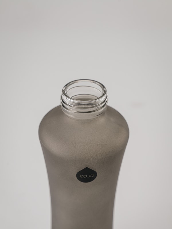 Mit ihrer geschwungenen Silhouette, der weichen, matten Oberfläche und den goldenen Details liegt die Glasflasche perfekt in der Hand. Nackte Silikondetails unterstreichen die Funktionalität und den eleganten Gesamteindruck.