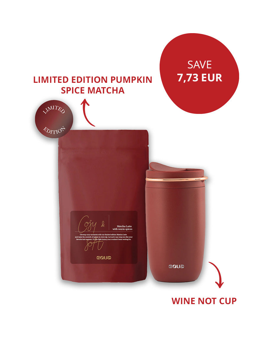 Creamy, rich, and perfectly spiced, Pumpkin Matcha pairs beautifully with the Wine Not Cup that keeps every sip warm and cozy. Winter just got a whole lot better.