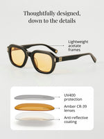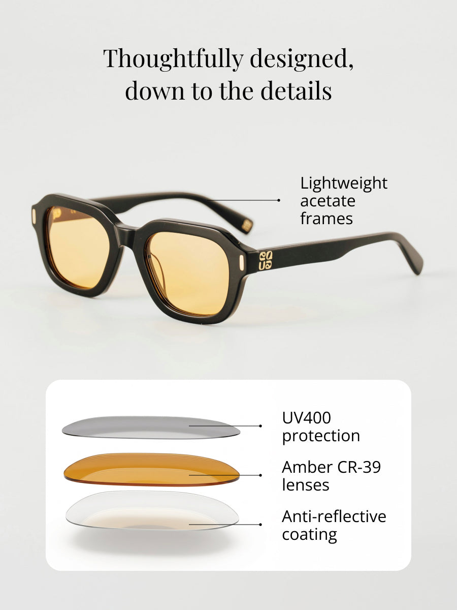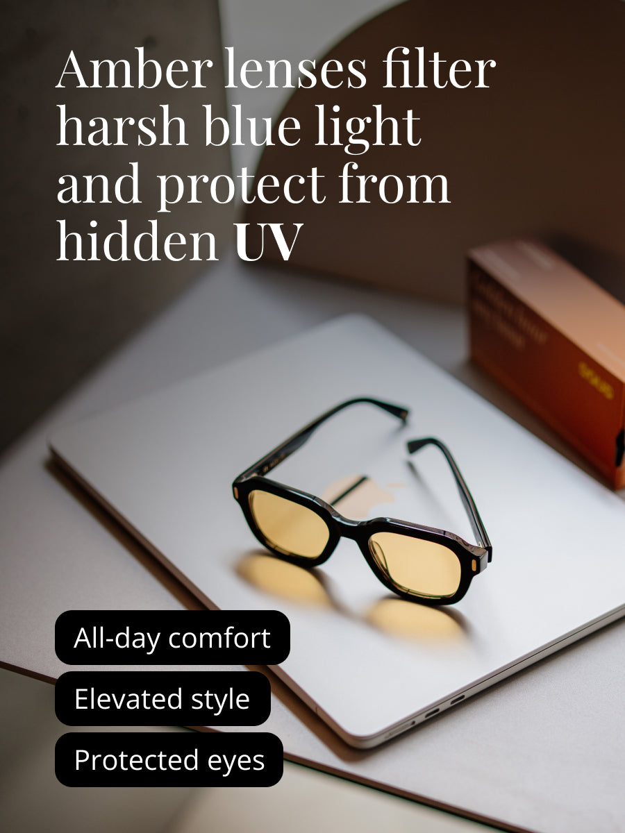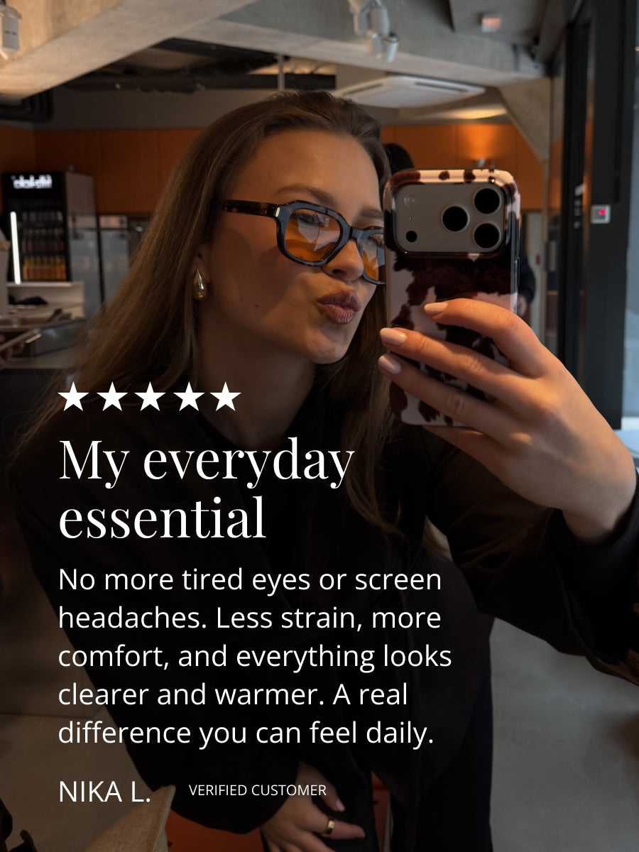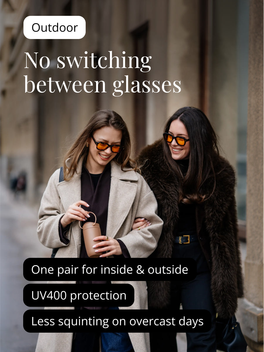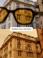 Warm amber tint adds a subtle glow to your skin and surroundings.