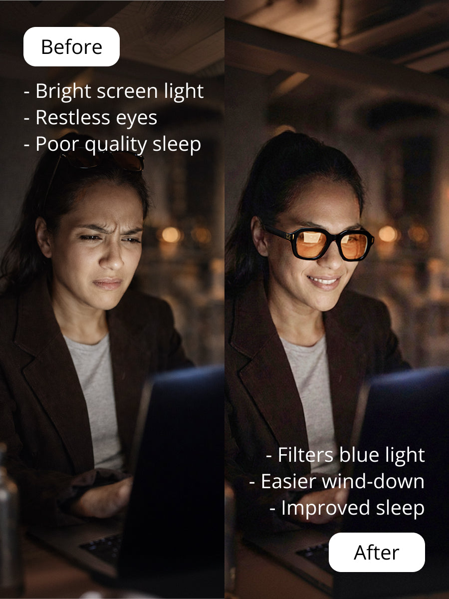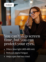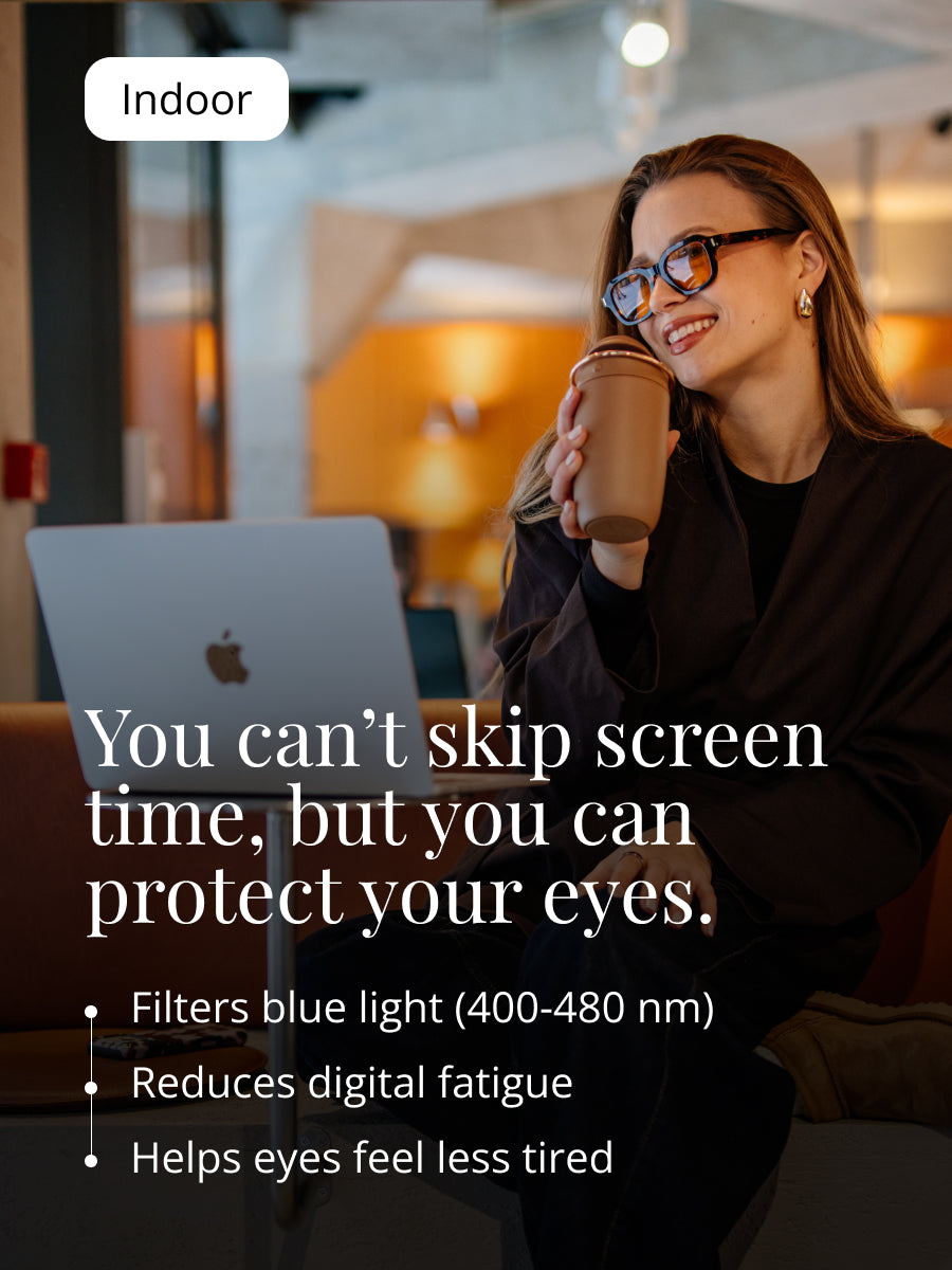 Filters blue light & reduces digital fatigue.