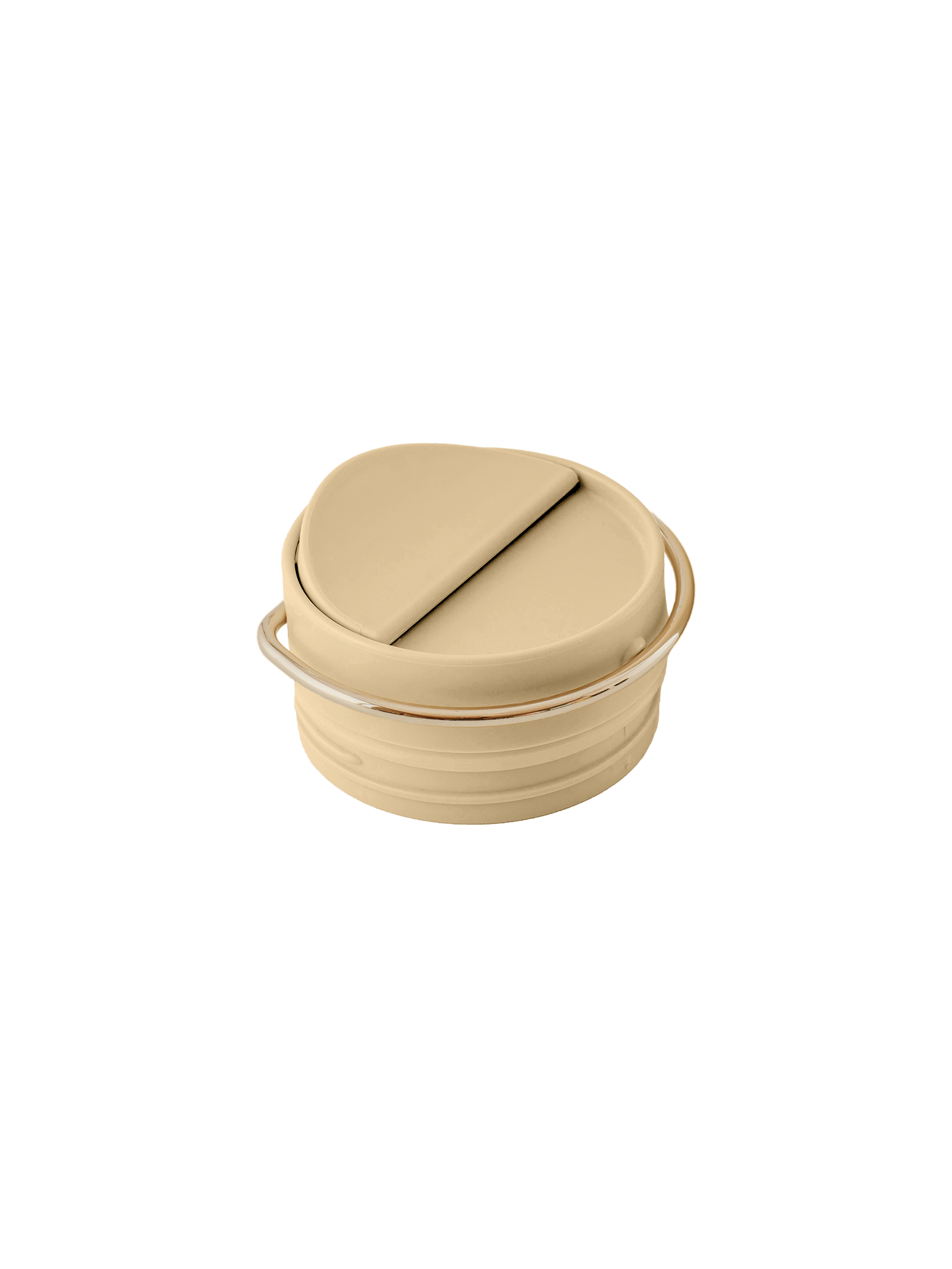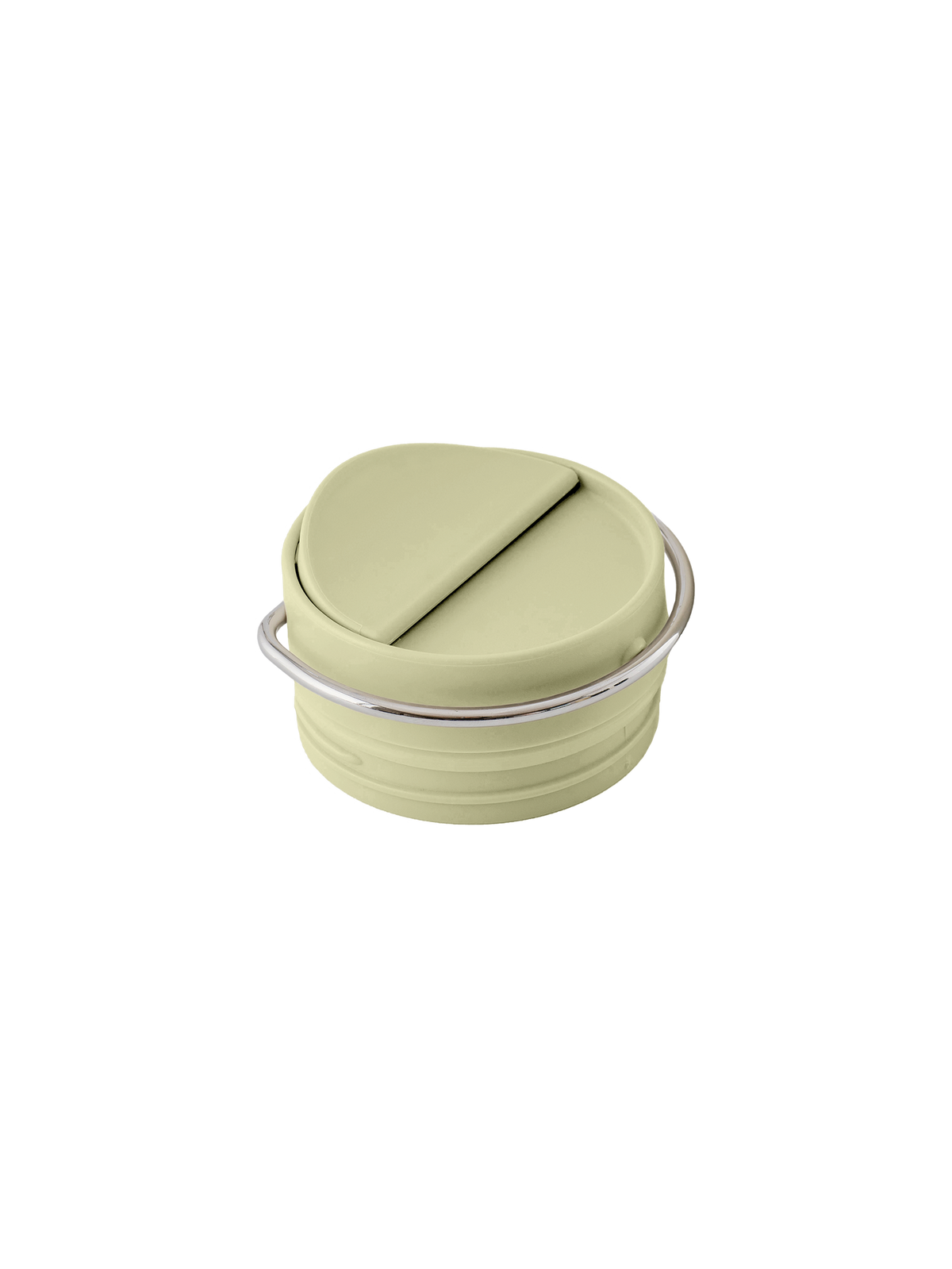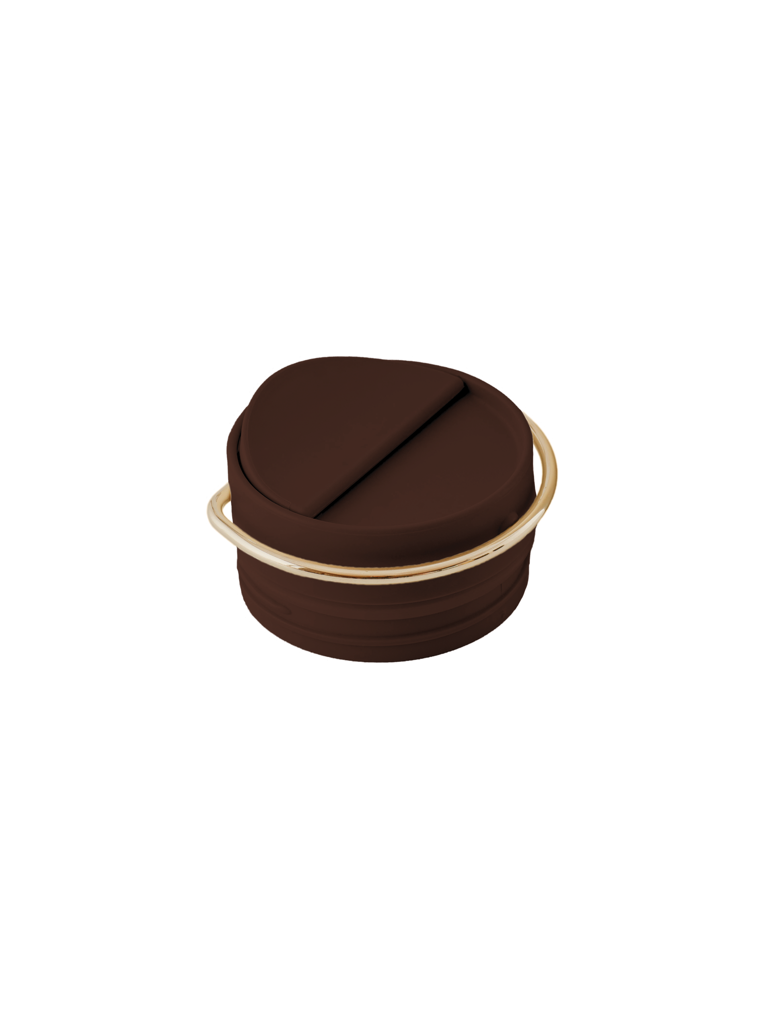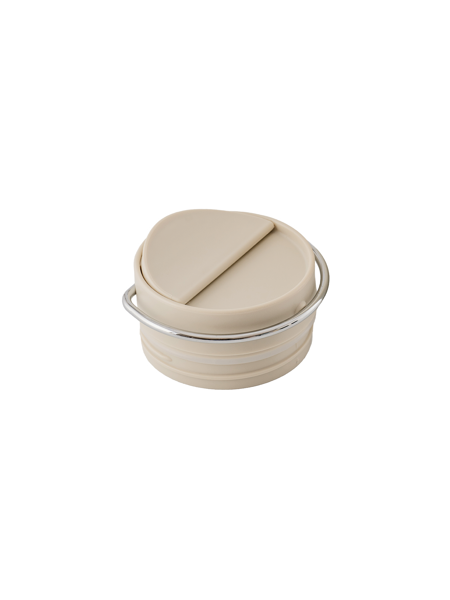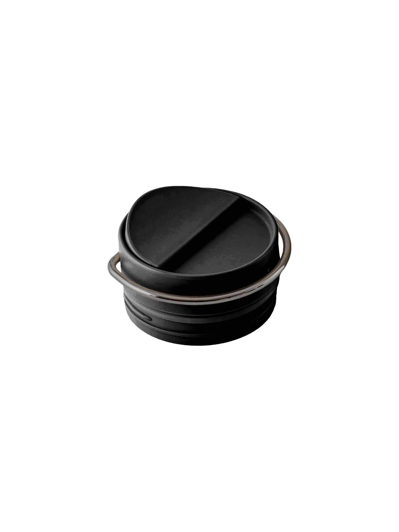 The lid is made of stainless steel with a sleek bracelet handle and a silicon ring that enables the cup to be 100% leak proof.