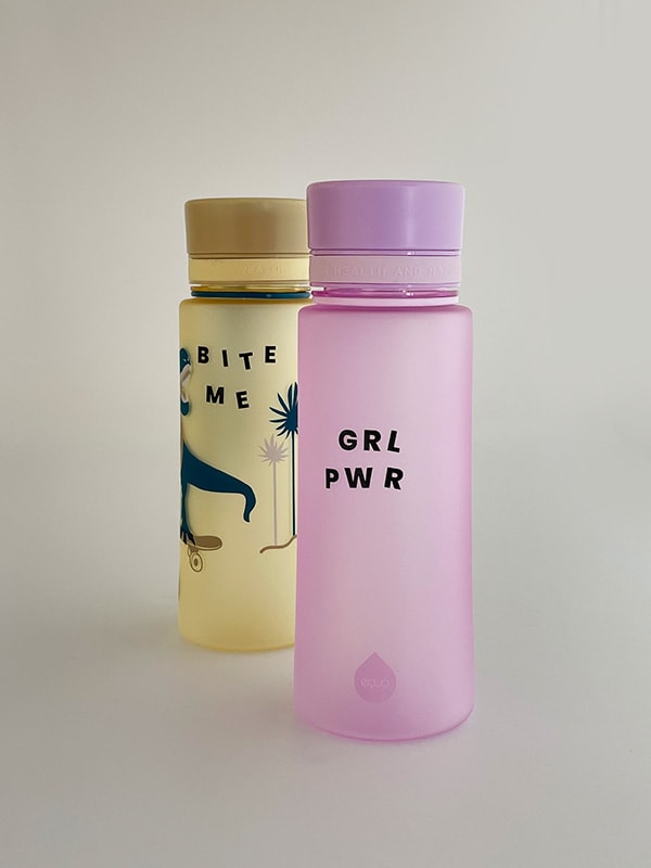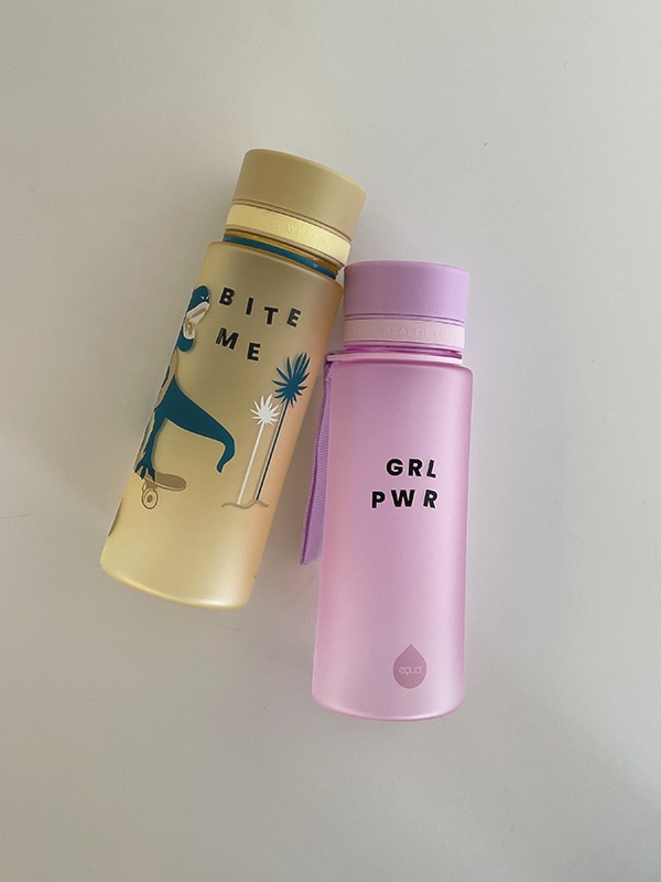 Design your own message or write your name on the EQUA water bottle and personalize it with alphabet stickers in black and white.