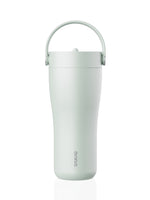 The bottle is made from stainless steel, the lid and straw are made from PP (Polypropylene) plastic, and the handle is made from TPE plastic with steel buttons.