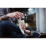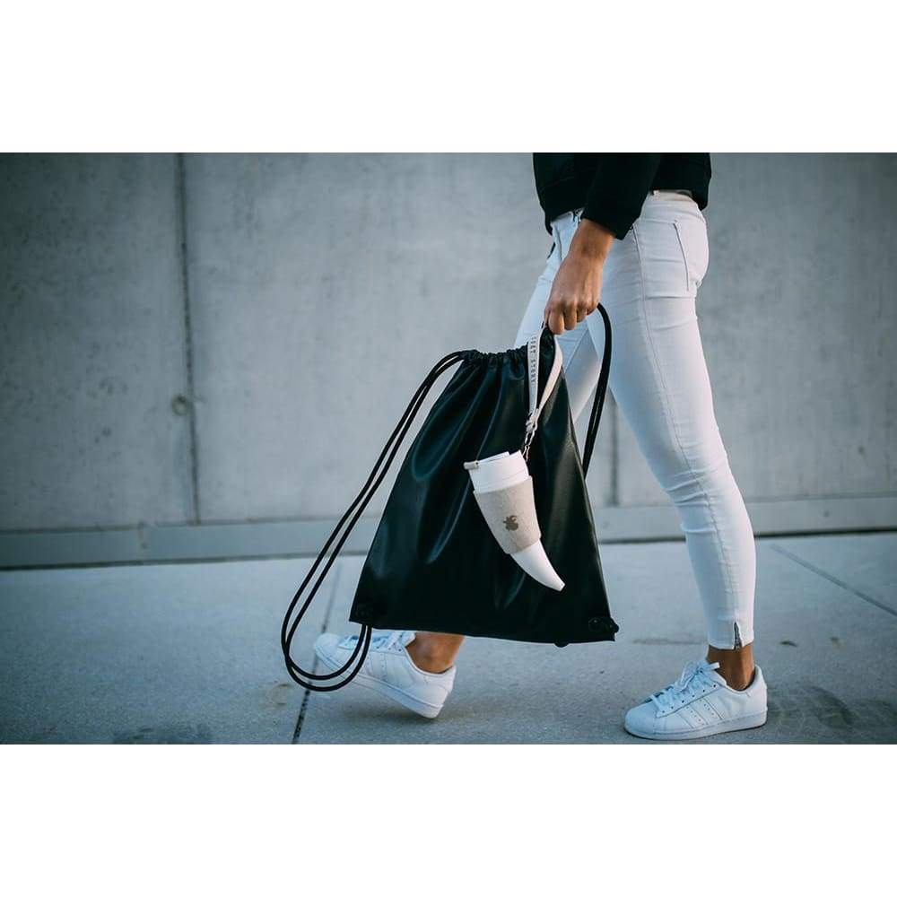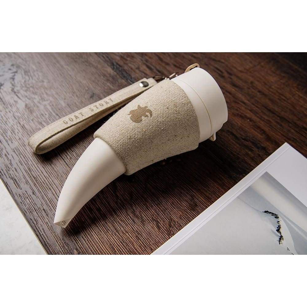 A unique horn-shaped coffee mug that brings style to your coffee drinking. It comes with a set of two straps for easy carrying and a special holder that turns into a stand for your Mug.