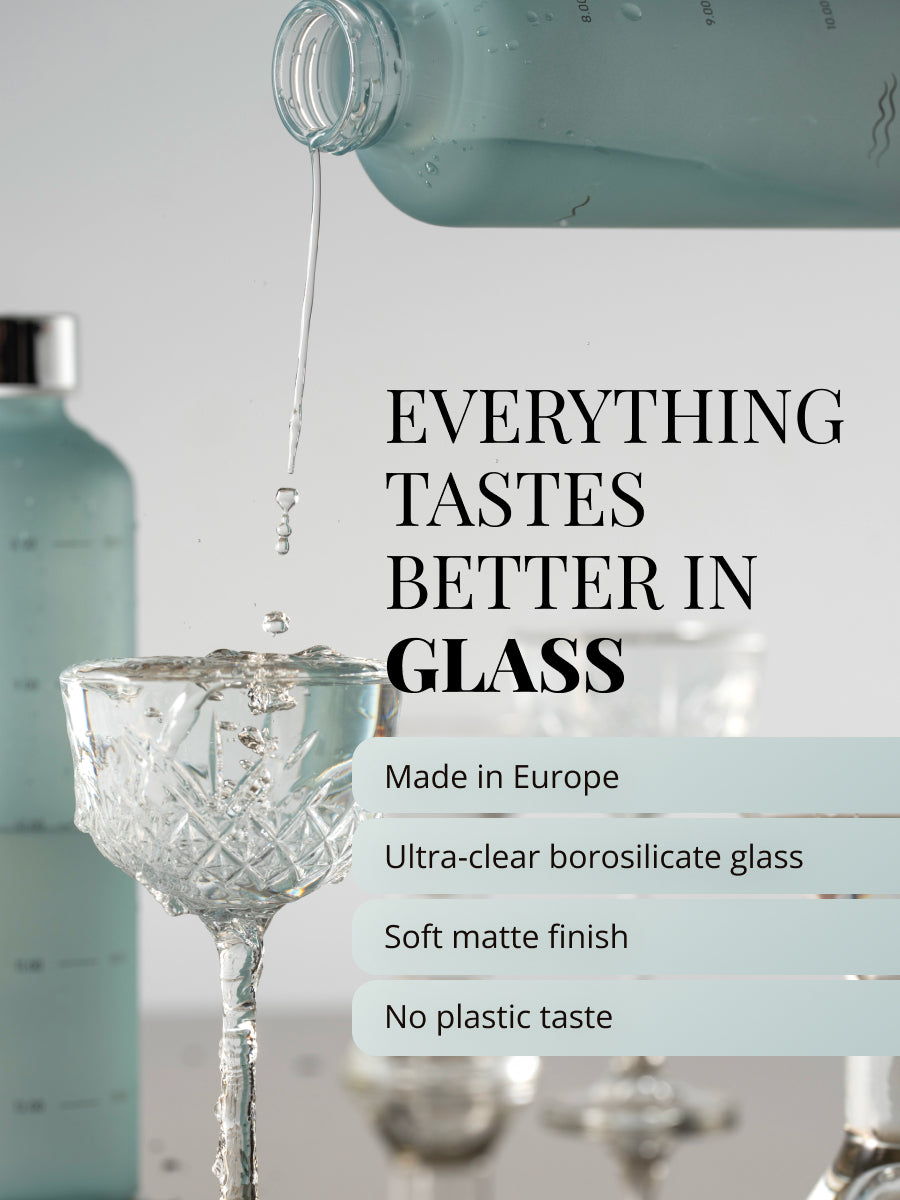 Made in Europe from ultra-clear borosilicate glass with a soft matte finish, it’s irresistibly smooth to hold — and leaves zero smell or plastic taste.