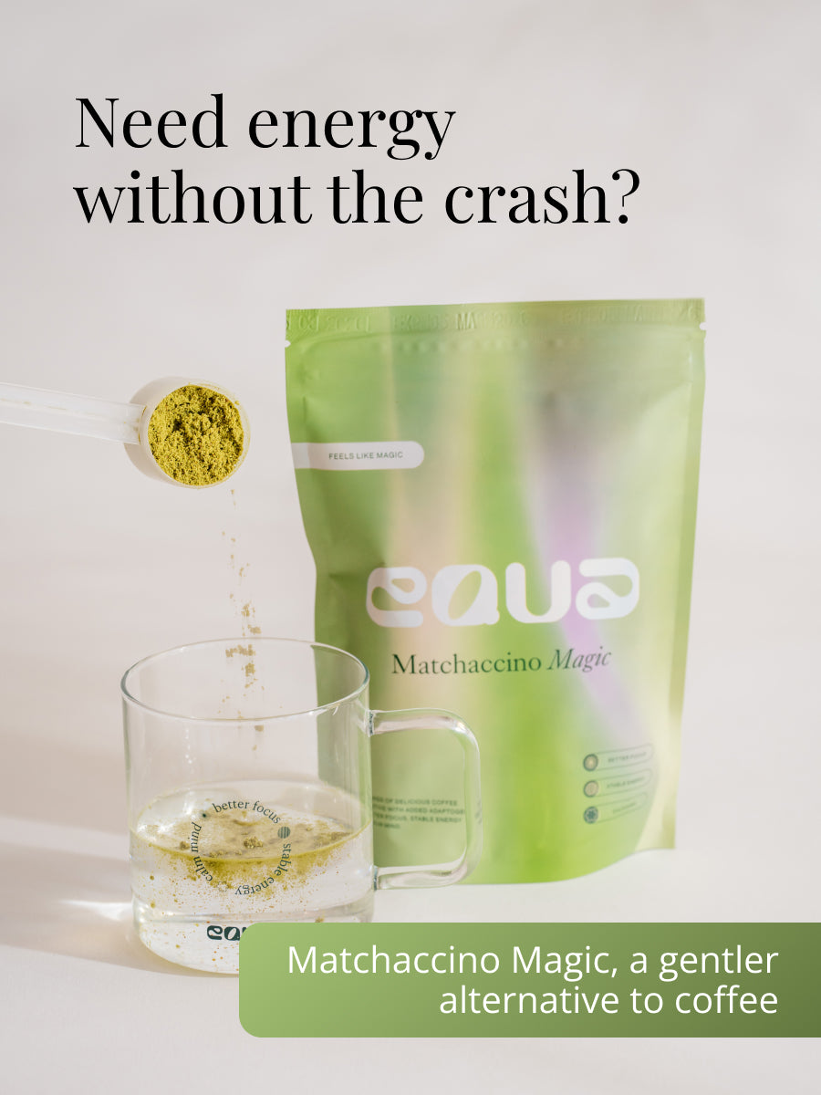 Užite si stabilnú, prirodzenú energiu vďaka matche a adaptogénom — žiadne výkyvy, len hladká koncentrácia.